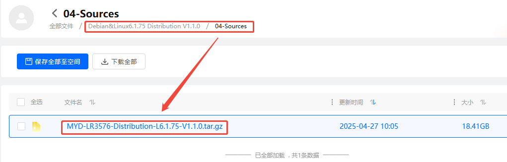 - 当前内核代码,由前面 Debian&Linux6.1.75 Distribution V1.1.0 的 04-Sources 目录下的 MYD-LR3576-Distribution-L6.1.75-V1.1.0.tar.gz 解压缩得到。