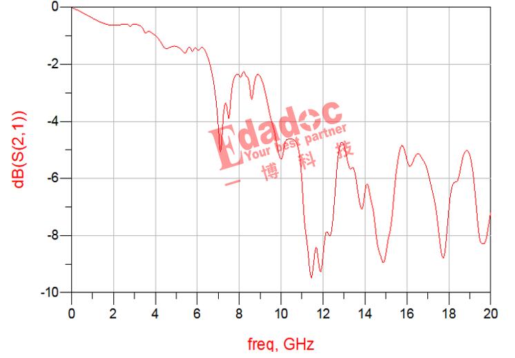 这个时候大家是不是很期待,参考电源平面的插入损耗曲线长啥样呢?按道理说,阻抗和参考地平面差别很小,预期插入损耗的结果也不会偏差很大吧?