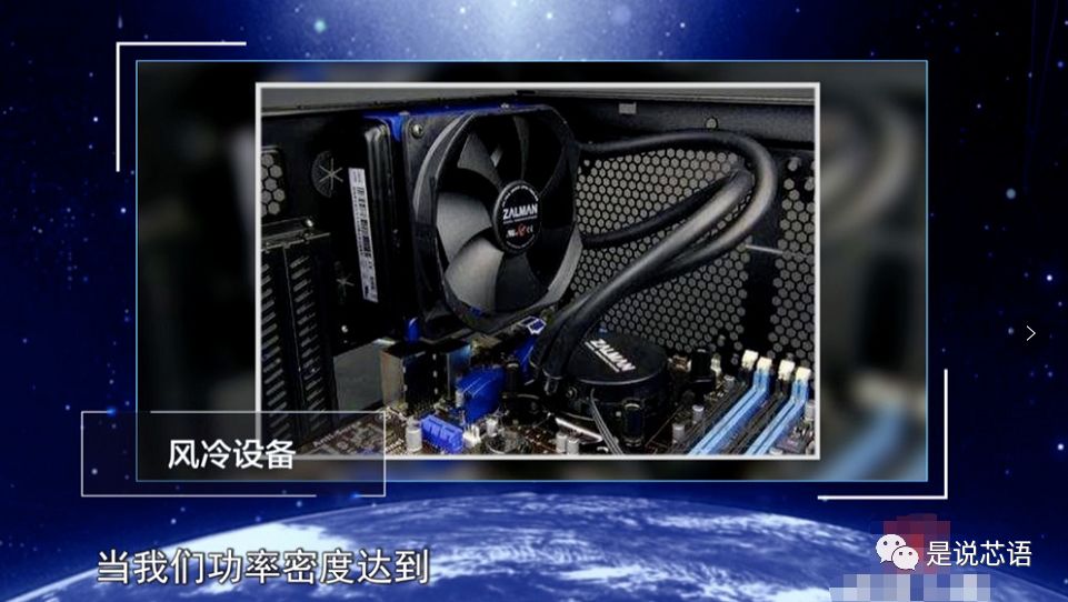 但是集成电路芯片呢?一般的芯片都在每平方厘米几十瓦,所以我们看到的芯片上往往要背一个散热器,上面还有一个风扇。当我们功率密度达到每平方厘米100瓦以上的时候,风已经不行了,要换成水冷。超级计算机当中要通水,这边凉水进去那边就变成温水出来。这样的一种热的耗电,这种热效应是非常非常厉害的,如果不加控制,到2005年前后,我们芯片的温度已经达到了核反应堆的温度,到2010的时候大概已经可以达到太阳表面的温度了,那么这么热的东西可能用吗?不可能用。