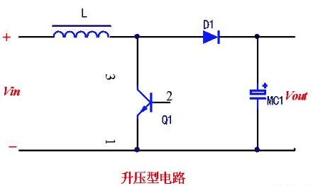 如图是升压型电路。工作过程:①开关管Q1导通时,扼流圈L1储能。这时 il=uin/lt(t为扼流圈导通时间)。设导通结束时的电流为il,因此,储能为e=0.5i2l。Q1截止后,il将从il开始减少,在L上感应出左低右高的自感电动势。