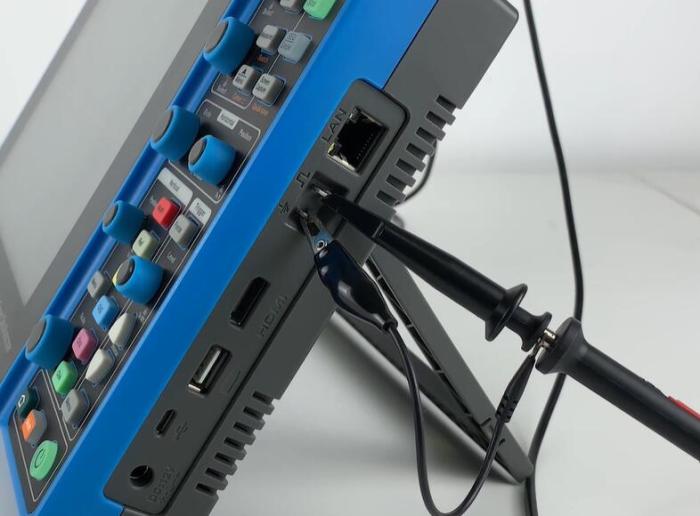 第一步:示波器开机,然后将探头与示波器相连