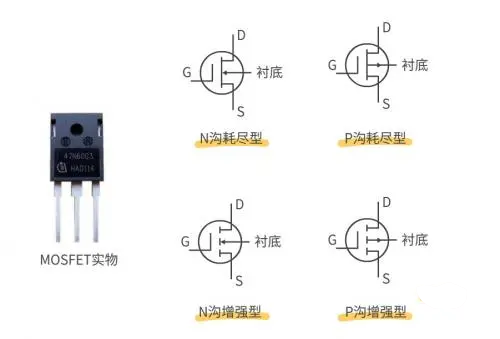 MOSFET 又可分为 N 沟耗尽型和增强型;P 沟耗尽型和增强型四大类。