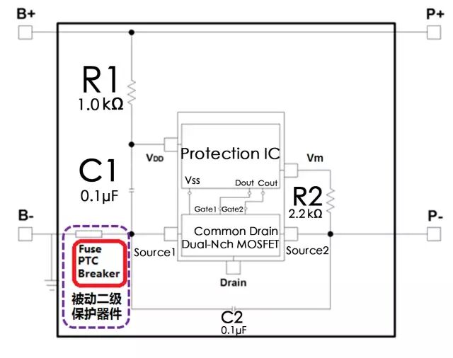 使用两级保护IC的二级电池保护方案有以下特点: