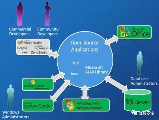 图说:微软后来拥抱开源,主要是认知到开源社群对其服务生态的扩大有非常明显的帮助。