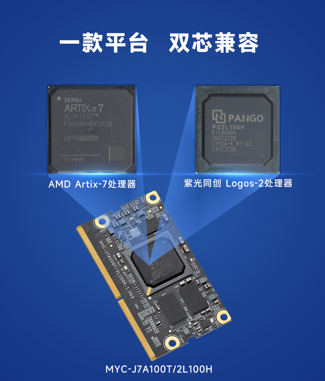 MYIR推出FPGA 开发平台具有极高的灵活性,用户可以根据项目需求自由选择AMD XC7A100T 和紫光同创 PG2L100H 这两款核心板,共享同一底板平台,可以实现无缝切换,在地缘政治不确定的环境下,双平台策略可以适应国内国际市场的不同需求。