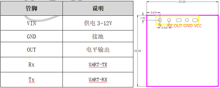 尺寸图及管脚图说明