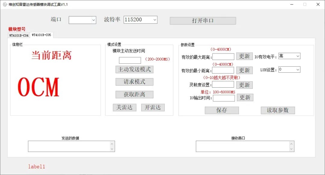 唯创知音WT41系列涵盖不同频段雷达,检测范围从0.5~30米,支持低功耗可到10uA;支持上位机PC工具调节IO状态、输出时间。