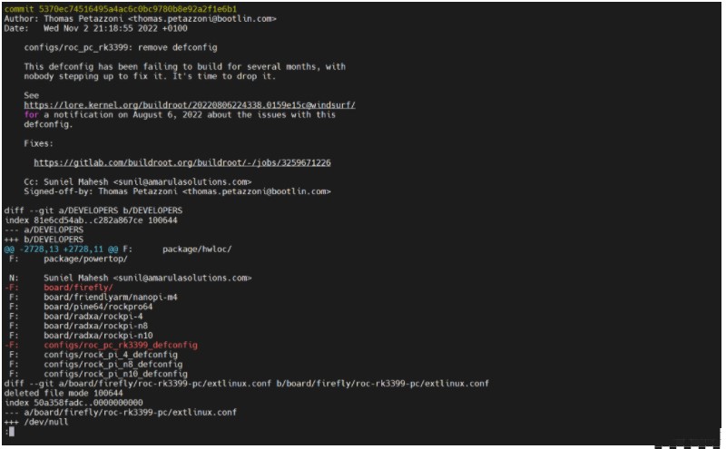 在主线 Buildroot 中,并没有发现 rk3399 相关的 config 配置文件,但是在历史提交中,我发现被删除掉了。