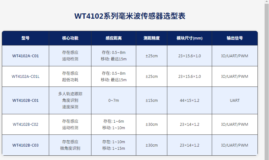唯创知音没有回避这一反馈,而是快速响应、切换方案——将WT4102A-C01传感器送交客户测试,并同步整理了完整的技术支持材料:规格书、性能参数、检测原理说明,以及在不同距离和角度下的灵敏度测试报告,系统性地为客户提供评估依据。